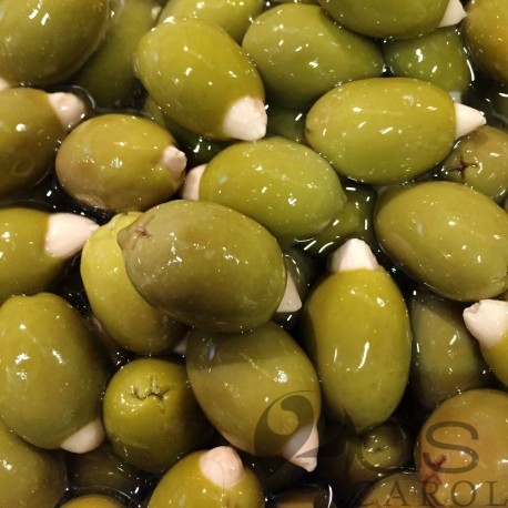 Olives vertes de Grèce, Farcies aux amandes, délicieuses à l'apéro, croquantes. Nutritives et fortes en saveur, les olives comme les amandes sont réputées pour leurs qualités nutritionnelles. Leur réunion est un petit cocktail d'énergie et de santé.